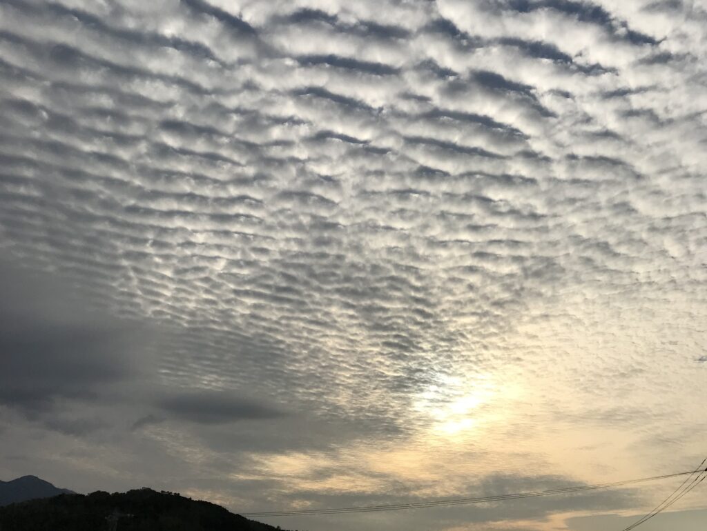 2025.10.24 見上げてごらん♪ WRITER:かに座女子レンジャー 見上げてごらん♪ 2025.10.24 すっかり空も秋模様となりました。 これからますます空気も澄んで、まさに 「天高く・・・・・・秋」ですね。 夜空の星も素敵ですけれど、昼間の空も それなりの楽しみがありますよ♪ 皆さまは魚の名前が付いた雲の種類 区別がつきますでしょうか? 私は時々わからなくなります💦 これはさば雲? *こちらはうろこ雲? わからないけれど、見てるだけでも楽しいです❣ 晴れた夕暮れに、空を見上げてみませんか? カテゴリー リフォームの 日々凡々 (146) かに座女子レンジャー (494) 自分でおうち メンテナンス (4) 前の記事へ 一覧へ戻る