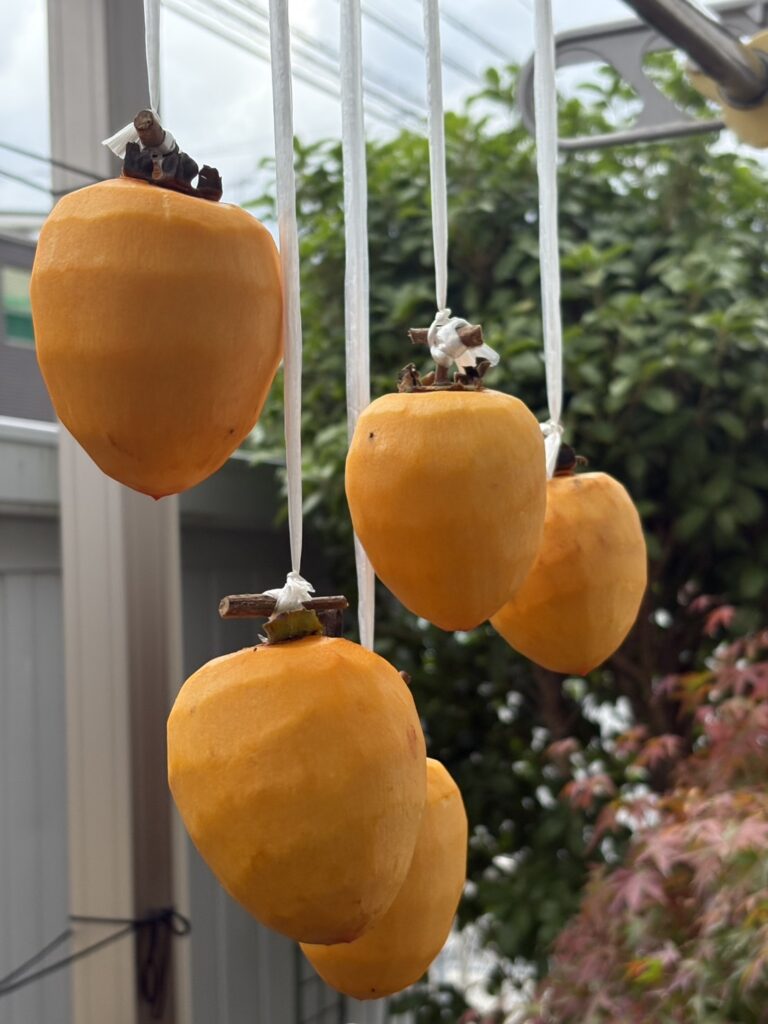 末の妹と5個ずつ母にもらって自宅で「干し柿作り」♪