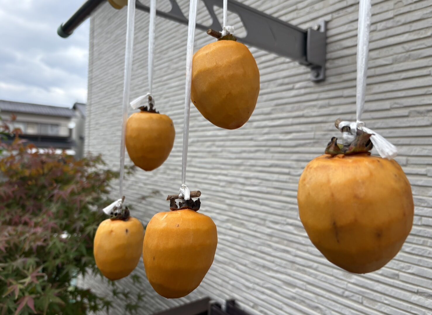 末の妹と5個ずつ母にもらって自宅で「干し柿作り」♪